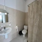Eine Badewanne und eine Dusche sind ebenfalls vorhanden. Außerdem gibt es einen Haartrockner und Hausschuhe.